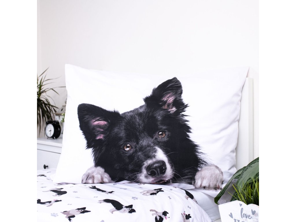 3D Baumwoll-Bettwäsche BORDER COLLIE weiß, 100% Baumwolle