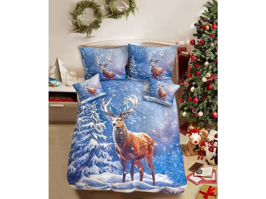 3D Baumwoll-Bettwäsche FROSTED DEER blau + Kissenbezug 40x50 cm kostenlos
