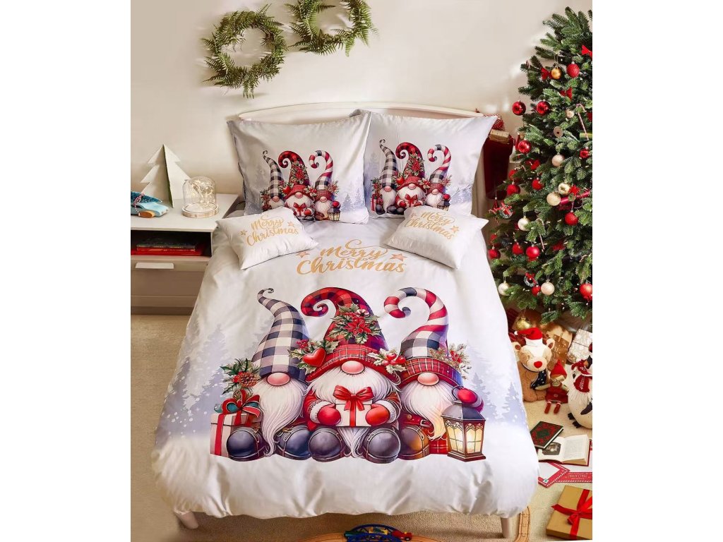 3D Baumwolle-Bettwäsche TRIO GNOMES weiß + Kissenbezug 40x50 cm kostenlos