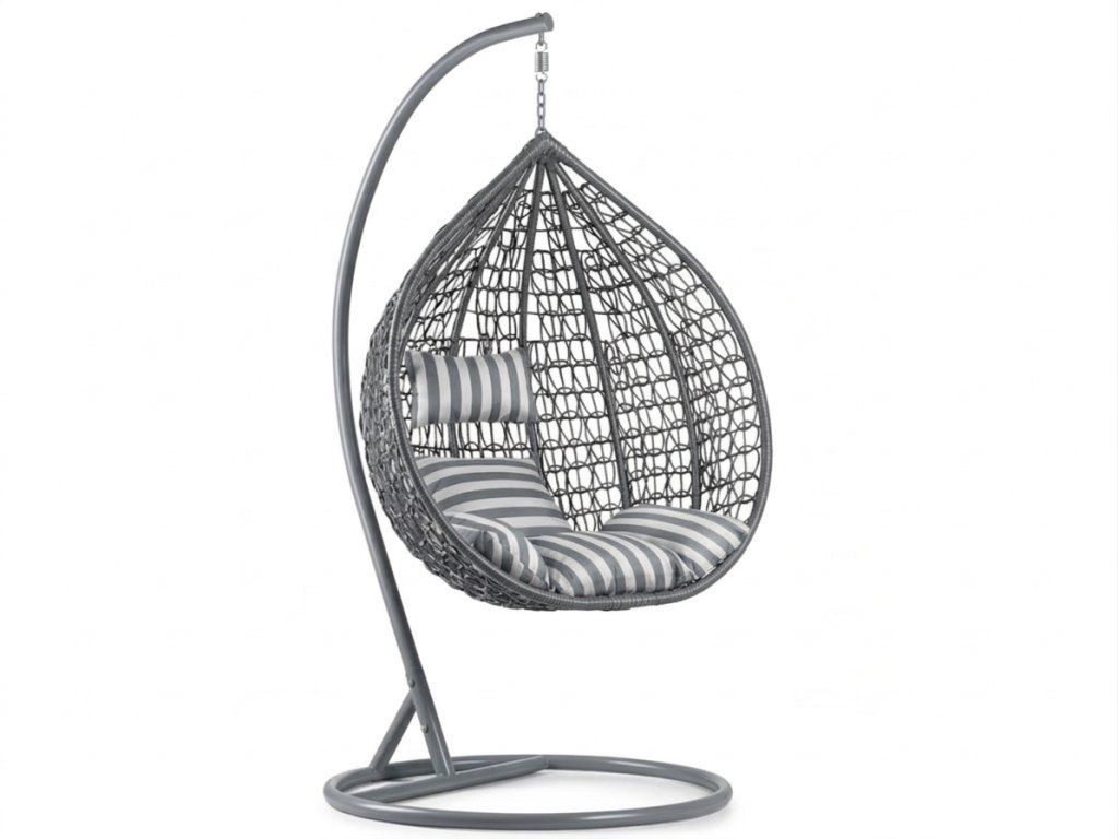 AKCE Šedé závěsné křeslo KOKON se stojanem, bílo-šedý polštář II. jakost