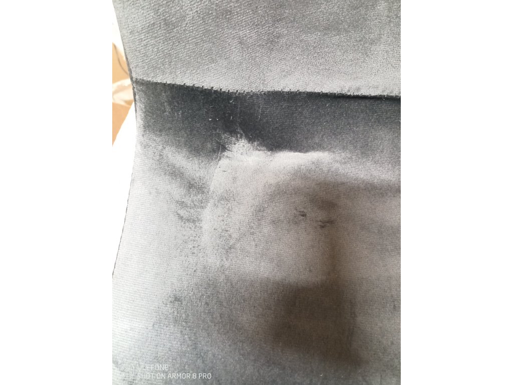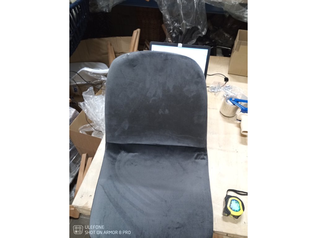 Der Stuhl ist mit einer stabilen Konstruktion in Form von vier Beinen ausgestattet, die aus festem Metall in schwarzer Farbe gefertigt sind. Sitz und Rückenlehne sind mit einem angenehmen Samtstoff bezogen und sorgen somit für ein bequemes Sitzen.