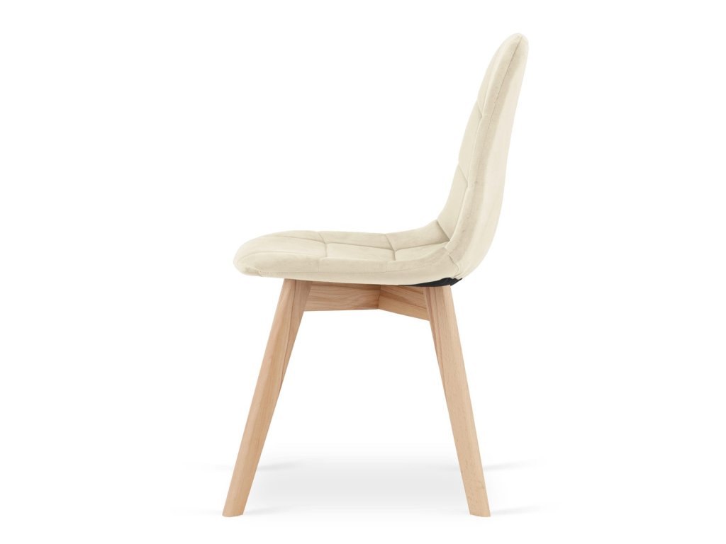 ANGEBOT Beige Samt-Esszimmerstuhl BORA II. Qualität bringt frischen Wind in Ihr Interieur. Bereits auf den ersten Blick besticht dieser Esszimmerstuhl durch sein modern interpretiertes Design, das auf Minimalismus setzt. Dies wird nicht nur durch das außergewöhnliche Design, sondern vor allem durch den beigen Samtbezug hervorgehoben, der wirklich auffällt. Sehr effektvoll wirkt auch das dezente Steppmuster des Sitzes. Der gesamte Stil des Stuhls wird durch die Holzbeine aus Buchenholz geschmackvoll unterstrichen.