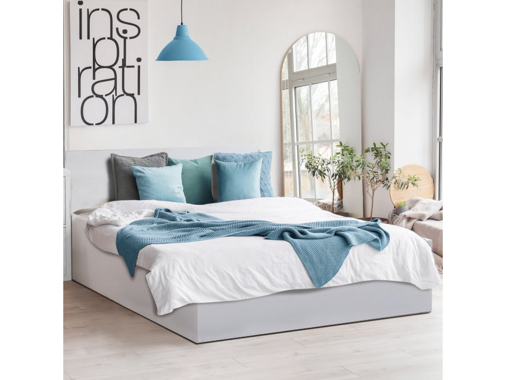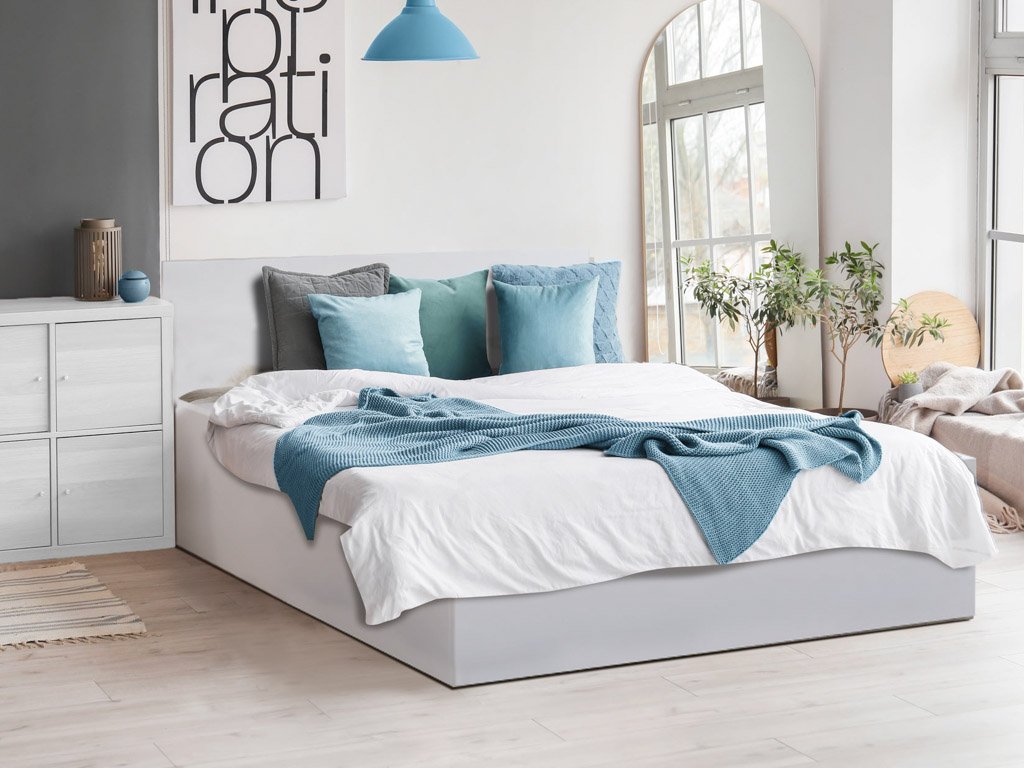 Weiße Farbe des BettesEin modernes Interieur und klare Linien können durch ein Bett in weißer Farbe geschaffen werden. Diese neutrale Farbe ist seit vielen Jahren beliebt und kehrt erneut an die Spitze der Beliebtheit zurück. Es wirkt frisch und luftig, lässt sich leicht mit anderen Farbtönen und auch dunkleren Farben abstimmen. Das Schlafzimmer wirkt entspannend und ruhig.