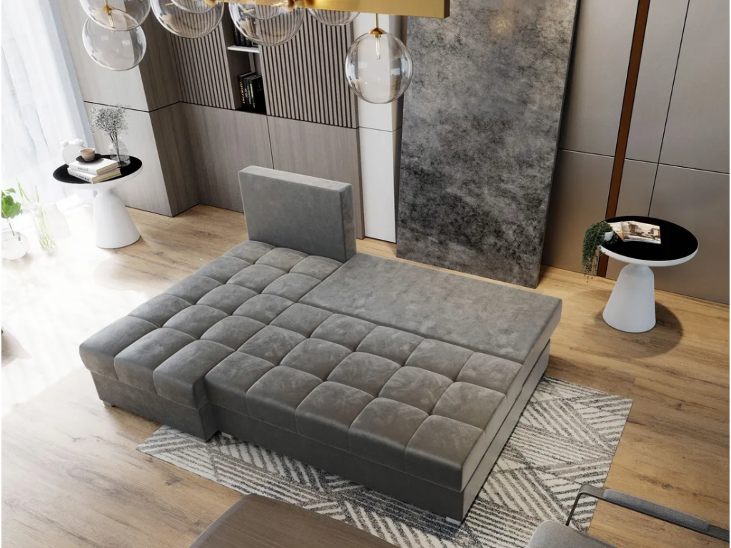 ANGEBOT Dunkelgrünes ausziehbares Ecksofa ZENA, zweiseitig II. Qualität