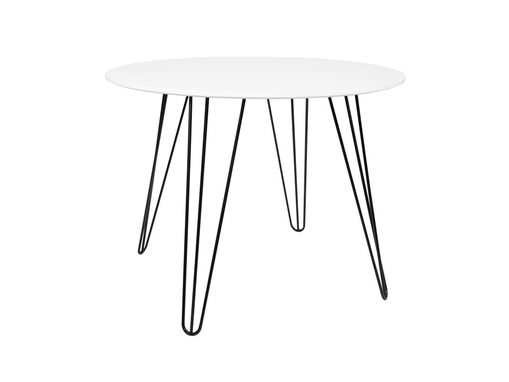 Moderní kulatý jídelní stůl HARRY 100x100 bílý s černými kovovými nohami ve tvaru vlasových spon
