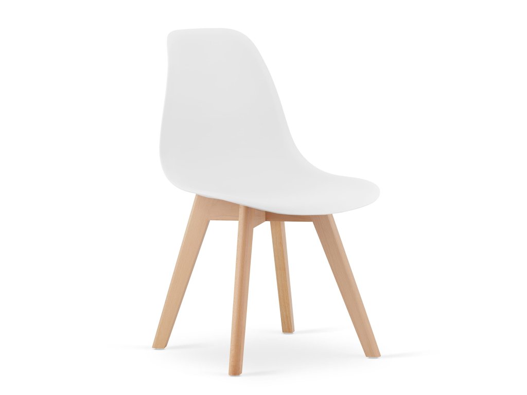 Moderní bílá jídelní židle KITO s dřevěnými nohami