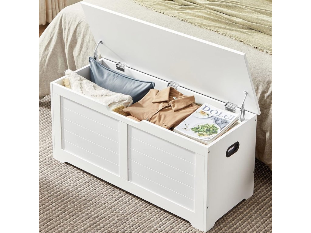 - Der Deckel ist mit starken Scharnieren und Scharnieren ausgestattet, um die Truhe in einem Winkel von 60 Grad oder weniger geöffnet zu halten