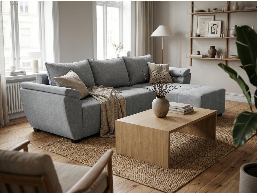 Ausziehbare, beidseitig verwendbare Ecksofagarnitur LIVARO 251x140 cm, hellgrau