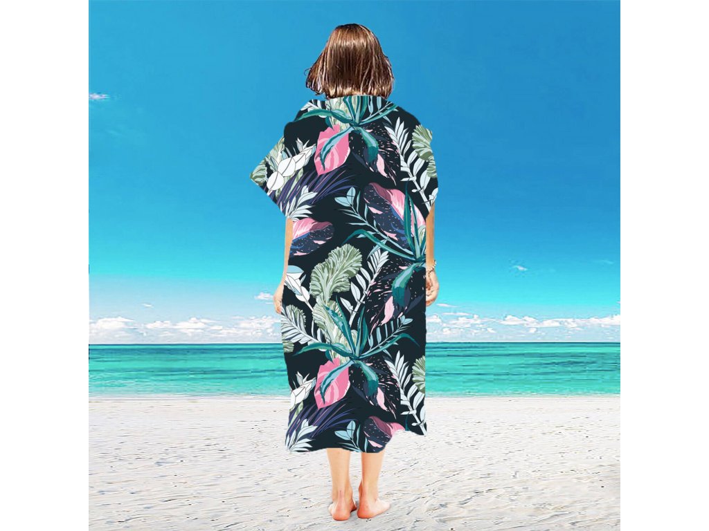 Badeponcho NIGHT BLOSSOM schwarz 80x145 cm