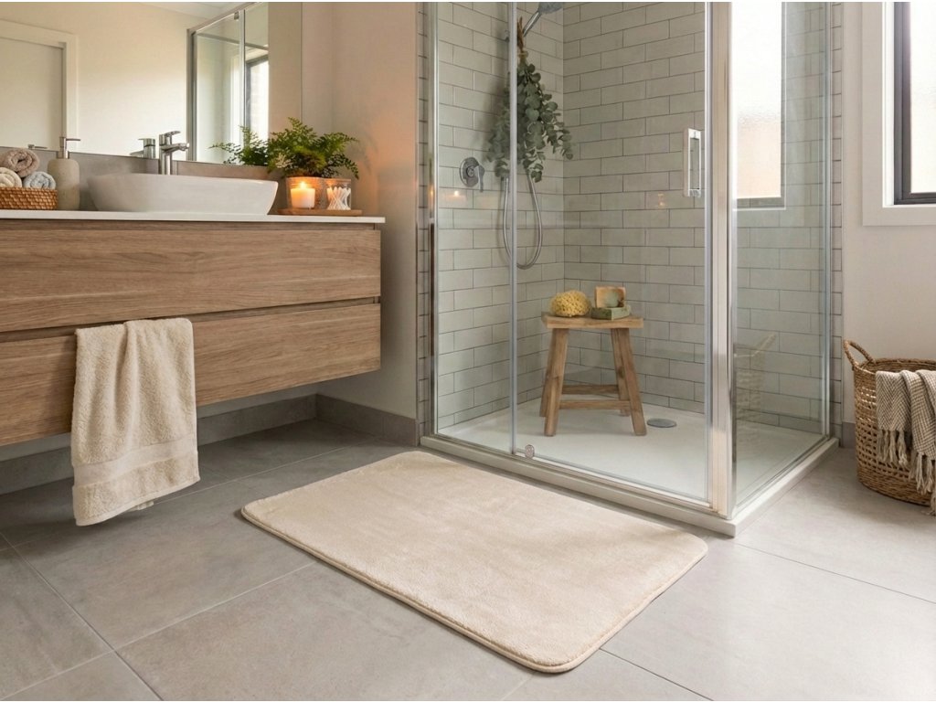 Badezimmerteppich TRIVORA 60x100 cm cremefarben