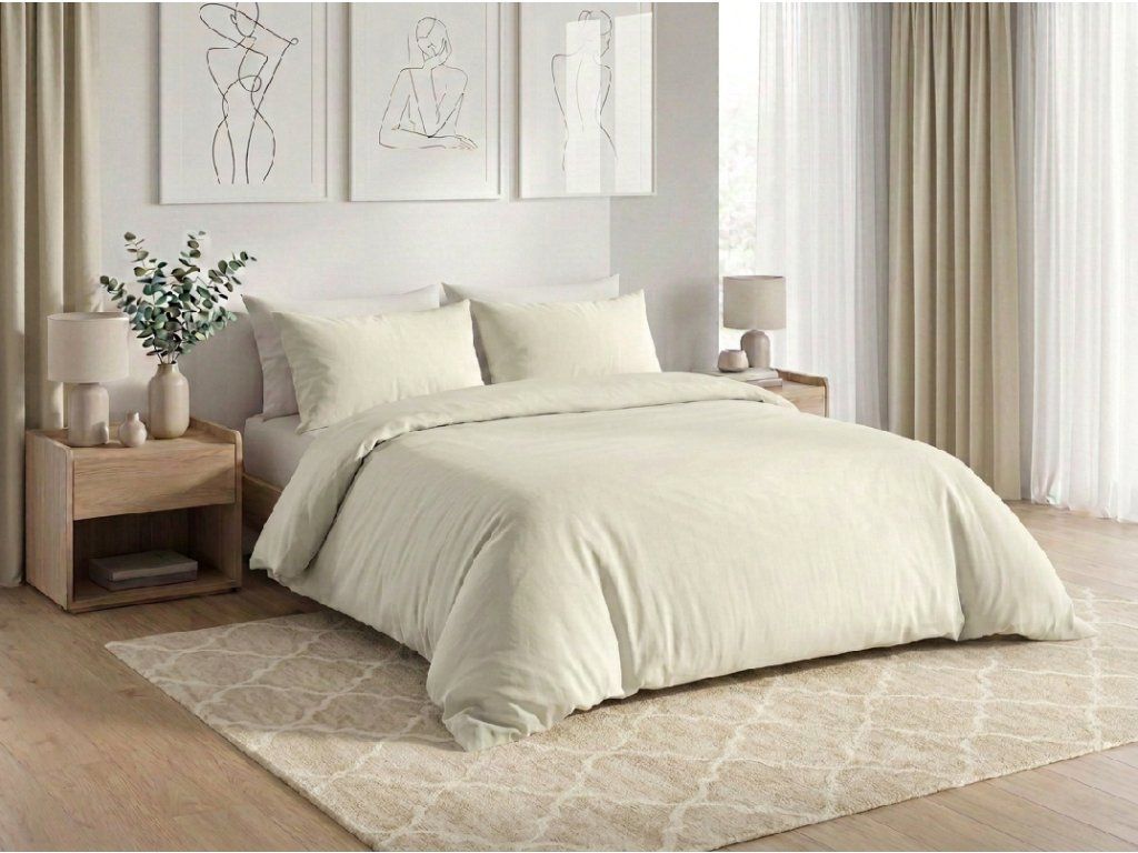 Baumwoll-Bettwäsche CALMORA hellbeige