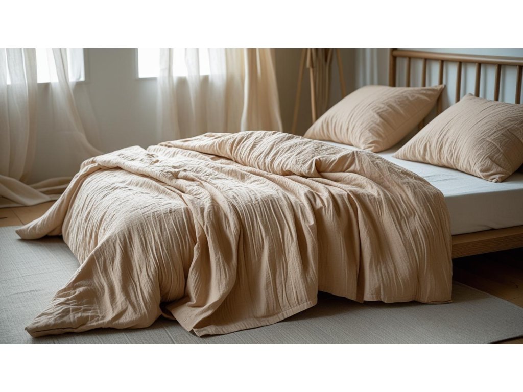 Baumwoll-Musselin-Bettwäsche aus 100% Baumwolle ist außergewöhnlich leicht, luftig und angenehm zu berühren, ideal für die Sommermonate und für ganzjährigen Komfort. Sie wird aus hochwertigem natürlichen Garn in offener Gewebestruktur hergestellt, was hohe Atmungsaktivität und schnelles Trocknen gewährleistet. Aufgrund ihrer Sanftheit ist sie auch für empfindliche Haut geeignet. Sie muss nicht gebügelt werden, wird mit jeder Wäsche weicher und das natürlich gekräuselte Aussehen passt hervorragend zu skandinavischen, Boho- und natürlichen Einrichtungsstilen.