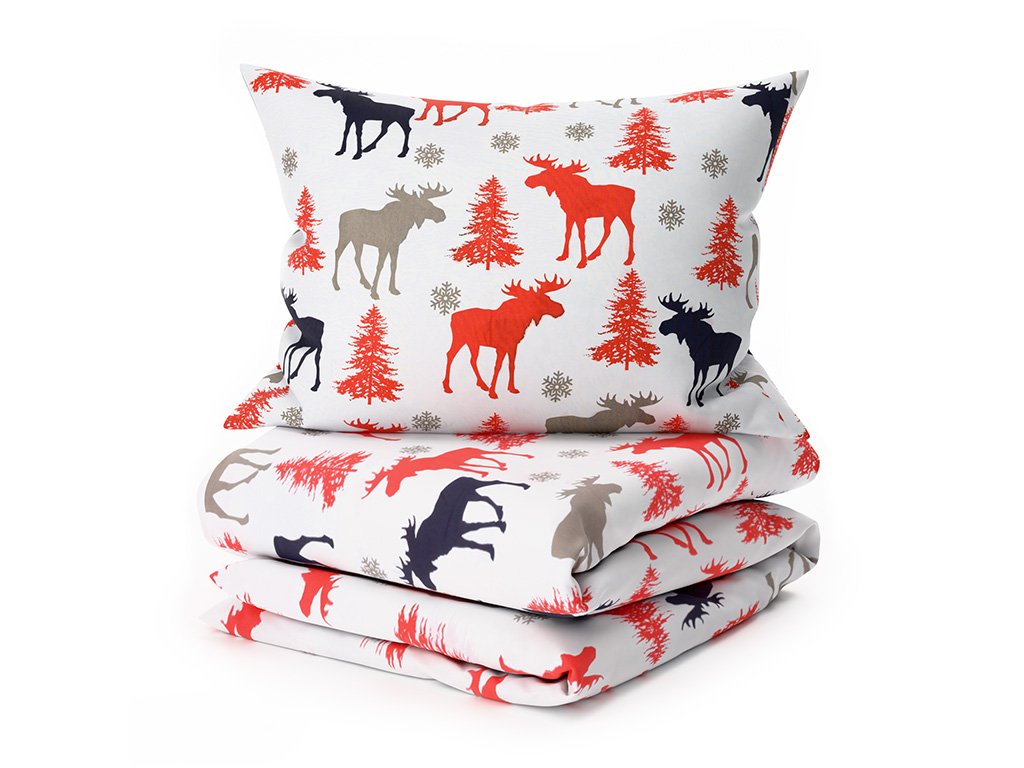 Baumwollbettwäsche CHRISTMAS MOOSE, weiß