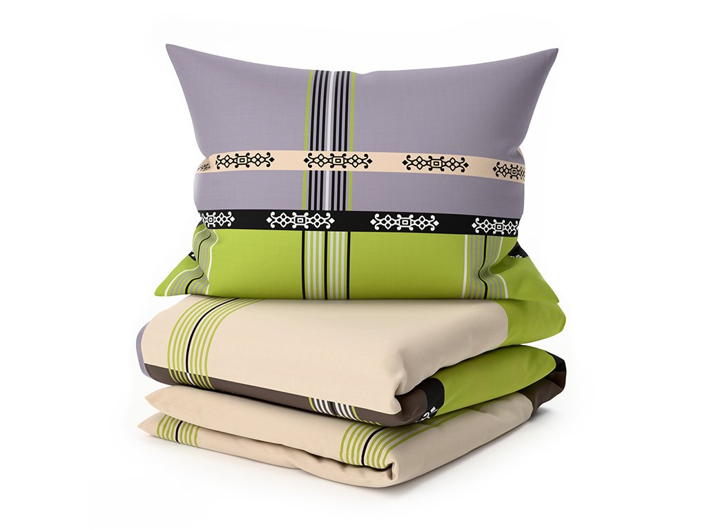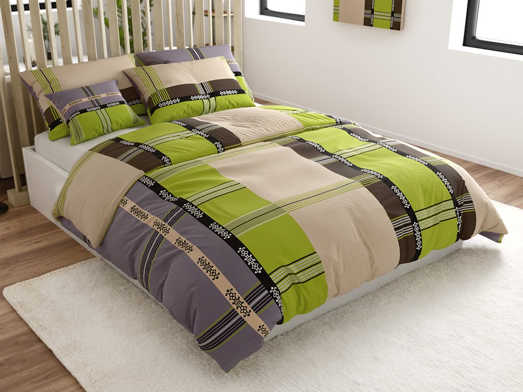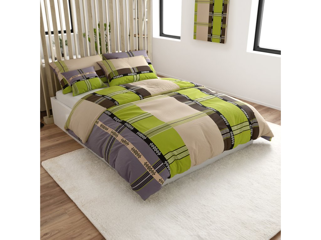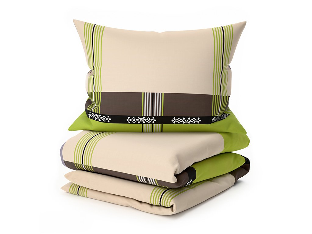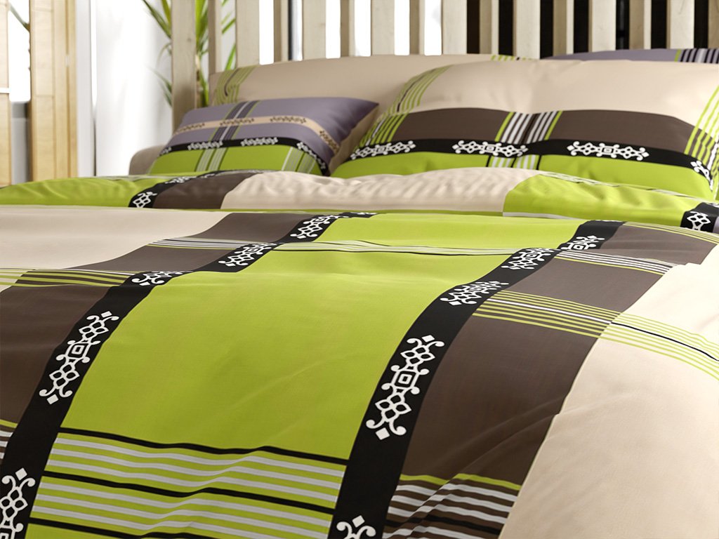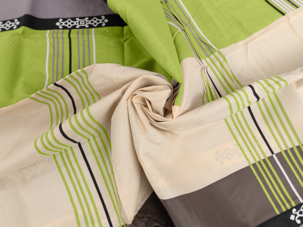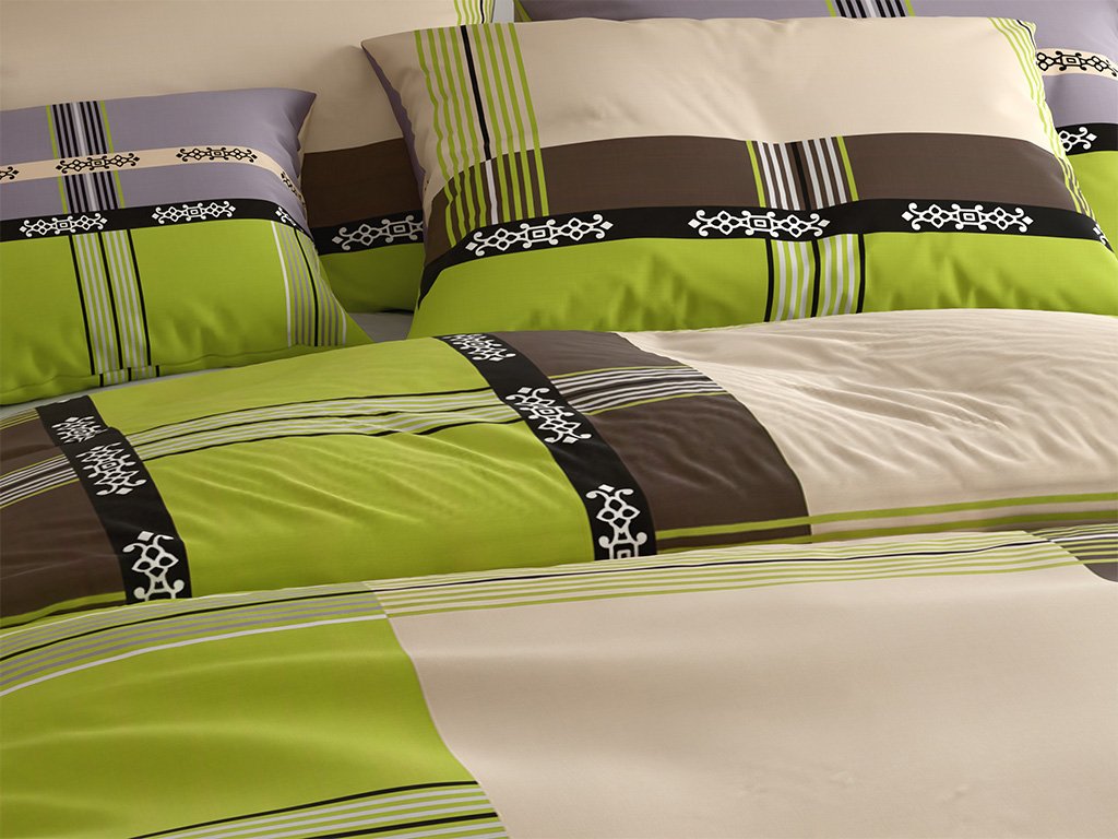 Die Baumwoll-Bettwäsche DANIELA grün mit geometrischem Motiv passt in Schlafzimmer im jeden Stil. Heller Hintergrund in Kombination mit farbigen Streifen, originellem Design und zarter Textilie werden auch Sie lieben.