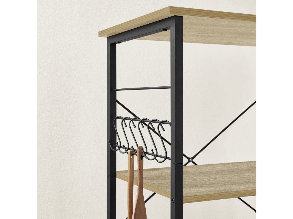 Dieser praktische Tisch auf Rollen passt sich leicht Ihren täglichen Bedürfnissen an. Sie können ihn als mobilen Servierwagen bei Festen, als Helfer im Heimbüro oder als elegante Ablage neben dem Sofa verwenden. Seine Kombination aus Metallkonstruktion und Artisan-Eichen-Dekor verleiht dem Interieur eine persönliche Note. Dank seiner kompakten Abmessungen lässt er sich leicht dorthin bewegen, wo Sie ihn gerade benötigen – er fügt sich nahtlos in jede Ecke Ihres Zuhauses ein.