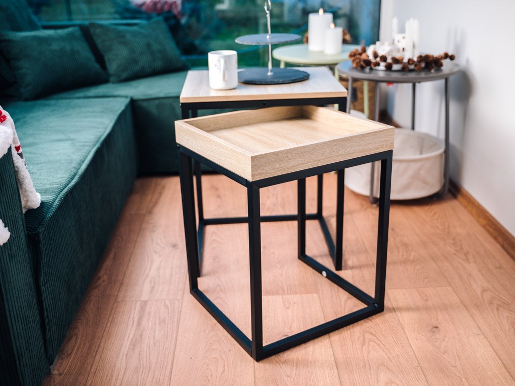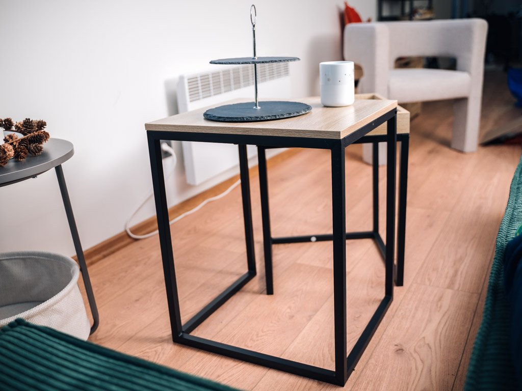 Verwandeln Sie Ihr Wohnzimmer in eine Wohlfühloase mit der cleveren Anordnung dieser Tische. Stellen Sie einen kleineren Tisch neben einen bequemen Sessel für eine Tasse Kaffee, ein Buch oder eine Duftkerze, während der größere Tisch sich hervorragend als Platz für Dekorationen, eine Vase mit Blumen oder eine Zimmerpflanze eignet. Kombinieren Sie die Tische für eine perfekte Atmosphäre mit gedämpfter Beleuchtung, wie einer Designerlampe oder einer Lichterkette. Dank ihrer Vielseitigkeit und der Möglichkeit, einen Tisch unter den anderen zu schieben, können Sie die Anordnung je nach Stimmung und Raum leicht ändern. Das Ergebnis? Eine praktische und stilvolle Ecke, die Sie zur Entspannung einlädt.