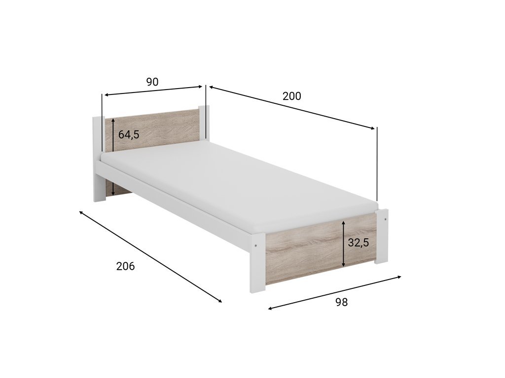 Bett IKAROS 90 x 200 cm, Artisan Eiche/Grau