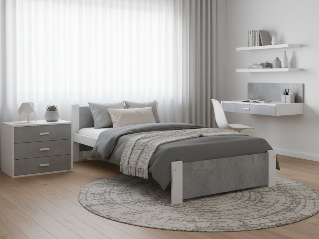 Bett IKAROS 90 x 200 cm, Beton/Weiß