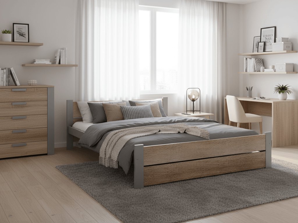 Bett IKAROS DOUBLE 140 x 200 cm, Eiche Sonoma/Grau