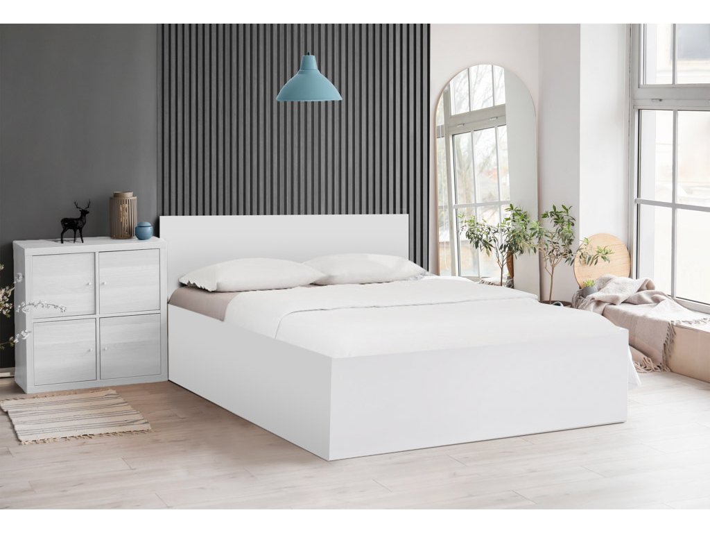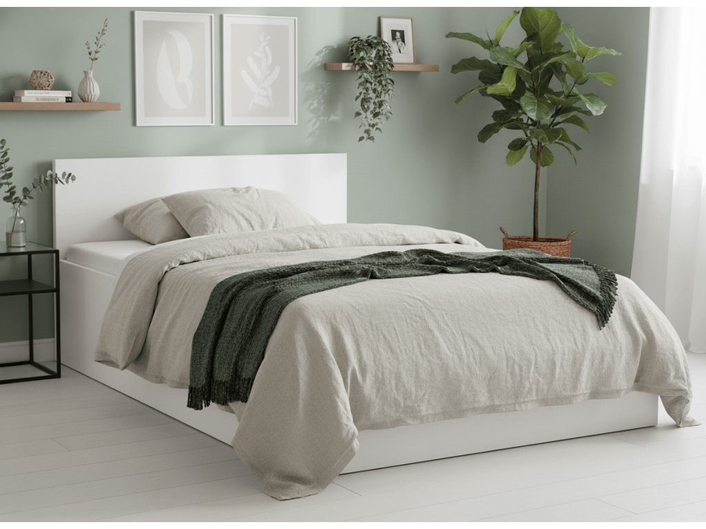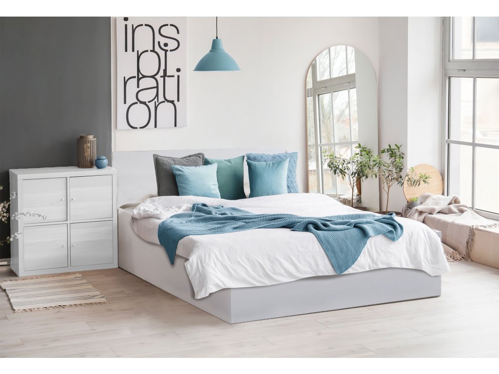 Ein Bett in Weiß hilft Ihnen dabei, ein modernes Interieur mit klaren Linien zu schaffen. Diese neutrale Farbe ist seit vielen Jahren beliebt und kehrt wieder auf die imaginäre erste Beliebtheitsstufe zurück. Es sieht frisch und luftig aus, Sie können es problemlos mit anderen Farbtönen und Tönen noch dunklerer Farben kombinieren. Das Schlafzimmer wirkt entspannend und friedlich.