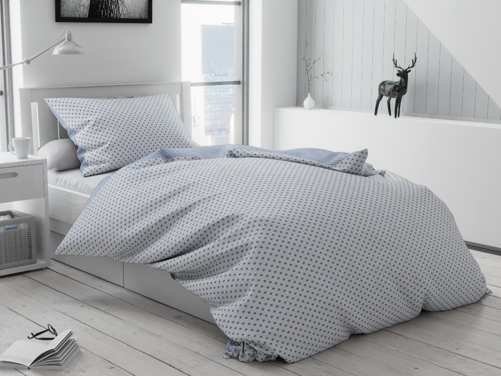 Hochwertige Bettwäsche mit einem modernen Muster wird Ihr Schlafzimmer garantiert verschönern. Helle und dauerhafte Farben verlieren auch nach vielen Wäschen nicht ihre Schönheit. Sie besteht aus hochwertiger Baumwolle, die erstaunlich weich, leicht und atmungsaktiv ist. Baumwolle ist auch ideal für Allergien, Asthma und empfindliche Haut. Die Bettwäsche hat auf der einen Seite ein Muster aus blauen Punkten auf weißem Hintergrund und auf der anderen Seite weiße Punkte auf blauem Hintergrund. Der Verschluss erfolgt an der Hoteltasche.