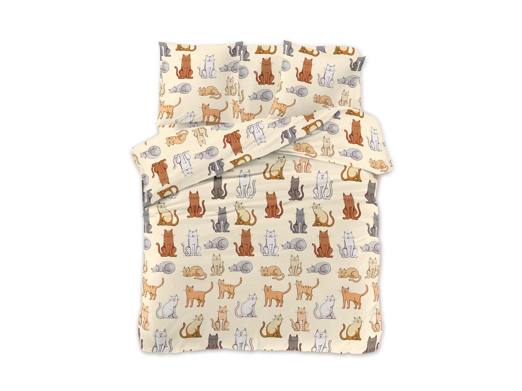 Bettwäsche aus Mikrofaser COLORED CATS, creme