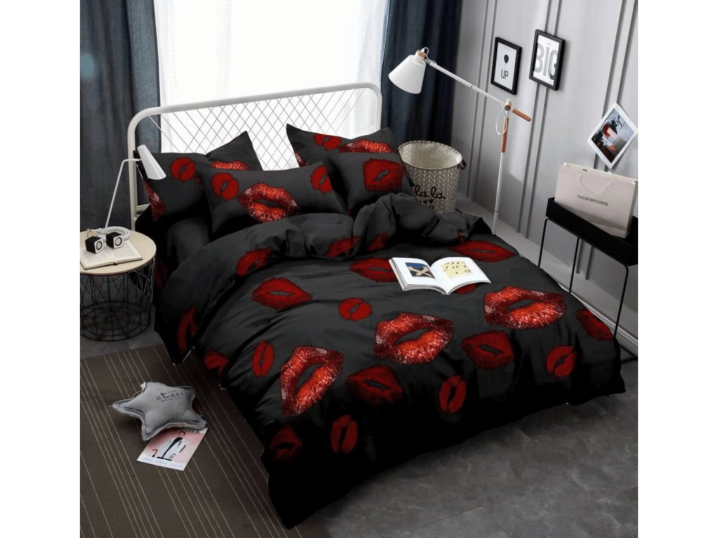 Bettwäsche aus Mikrofaser RED KISS schwarz