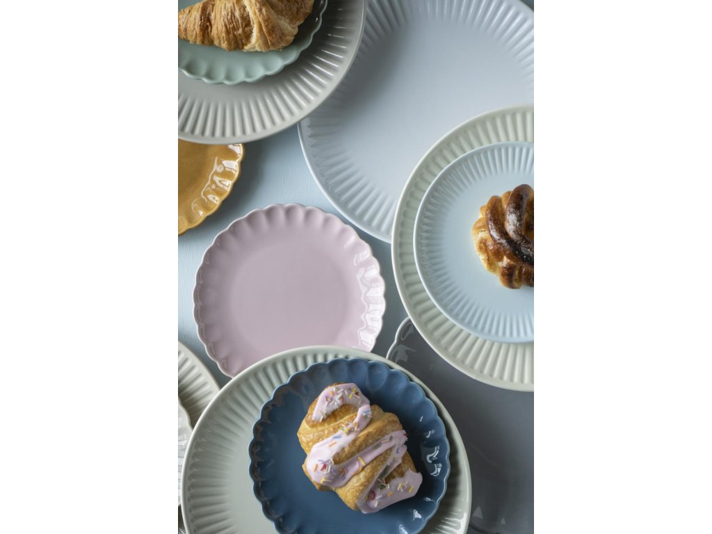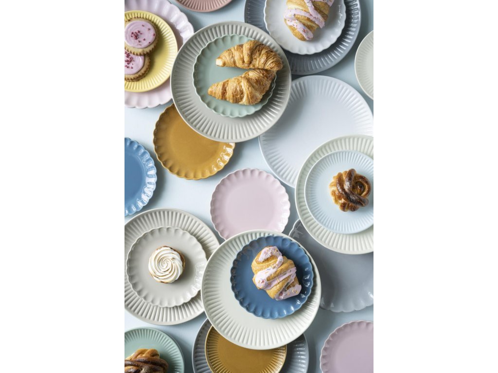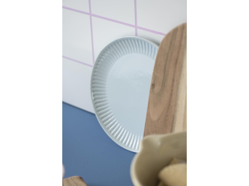 Auch die Küche kann stilvoll sein. Blauer Keramikteller MYNTE STILLWATER in blauer Farbe verschönert die skandinavische Küche und das Esszimmer. Originelle Oberfläche mit regelmäßigen Rillen passt perfekt in jedes Interieur.