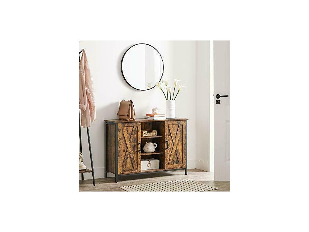 Kombination aus Holz und Metall bringt nicht nur ein modernes industrielles Aussehen in den Innenraum, sondern auch hohe Widerstandsfähigkeit und Stabilität. Dieses Möbelstück eignet sich hervorragend für Wohnzimmer, Flure oder Arbeitszimmer. Es bietet viel Stauraum und wirkt gleichzeitig ästhetisch und sauber. Dank der praktischen Gestaltung mit offenen Regalen und verschließbaren Türen bleibt alles ordentlich. Ideal für diejenigen, die Funktionalität und Stil in einem suchen.