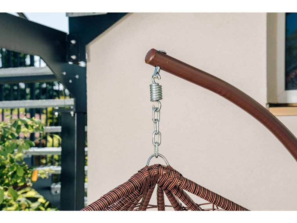 Entdecken Sie die wohltuenden Effekte des Schaukelns mit unseren hängenden Sesseln, auch bekannt als Ei-Sessel, die auch Ihre geistige Gesundheit pflegen. Schaukeln erzeugt ein Gefühl von Wohlbefinden, innerer Ruhe und entfernt effektiv psychische Spannungen. Hochwertig verarbeitete Schaukelstühle aus Kunst-Rattan sind äußerst widerstandsfähig gegenüber widrigem Wetter und Haustieren. Kunst-Rattan ist auf den ersten Blick kaum von natürlichem Rattan zu unterscheiden. Unsere Hängesessel passen perfekt sowohl in den Garten als auch in den Innenbereich. Genießen Sie freie Momente in diesen Stühlen im skandinavischen Stil, die zu den beliebtesten Stücken moderner Möbel gehören. Gönnen Sie sich luxuriöse Entspannung und bringen Sie Elemente der Ruhe und Eleganz in Ihr Zuhause und Ihren Garten.
