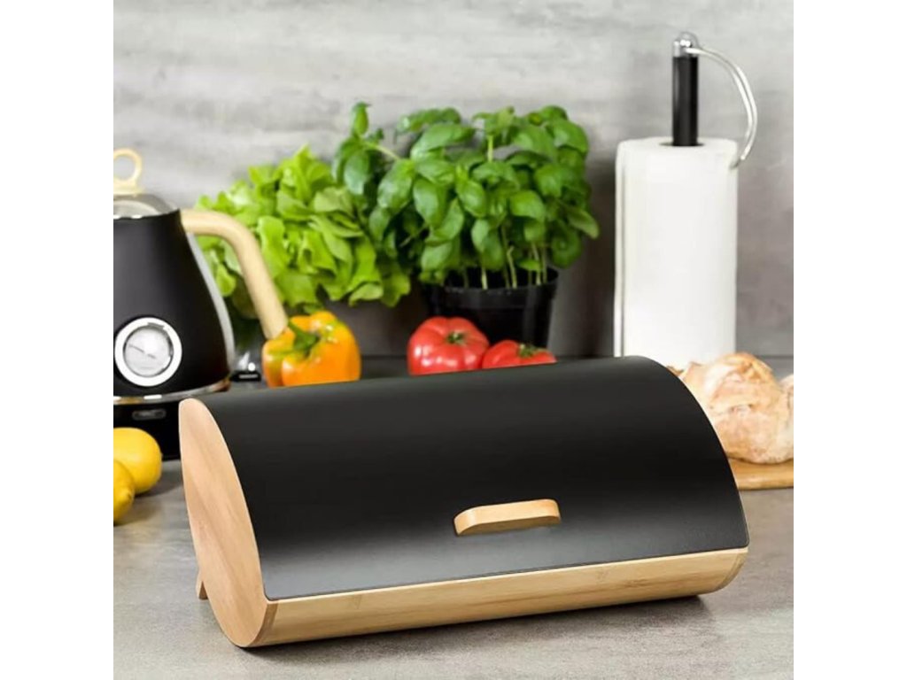 Entdecken Sie den eleganten Brotkasten schwarz aus Bambus CRUSTY, der durch modernes Design und praktische Verwendbarkeit besticht. Mit seinen Abmessungen bietet er genügend Platz zur Aufbewahrung Ihrer Lieblingsbrotsorten und Backwaren. Hergestellt aus hochwertigem Bambus mit schwarzem Deckel, sieht dieser Brotkasten nicht nur großartig aus, sondern hält Ihr Gebäck auch länger frisch dank optimaler Lagerungsbedingungen.