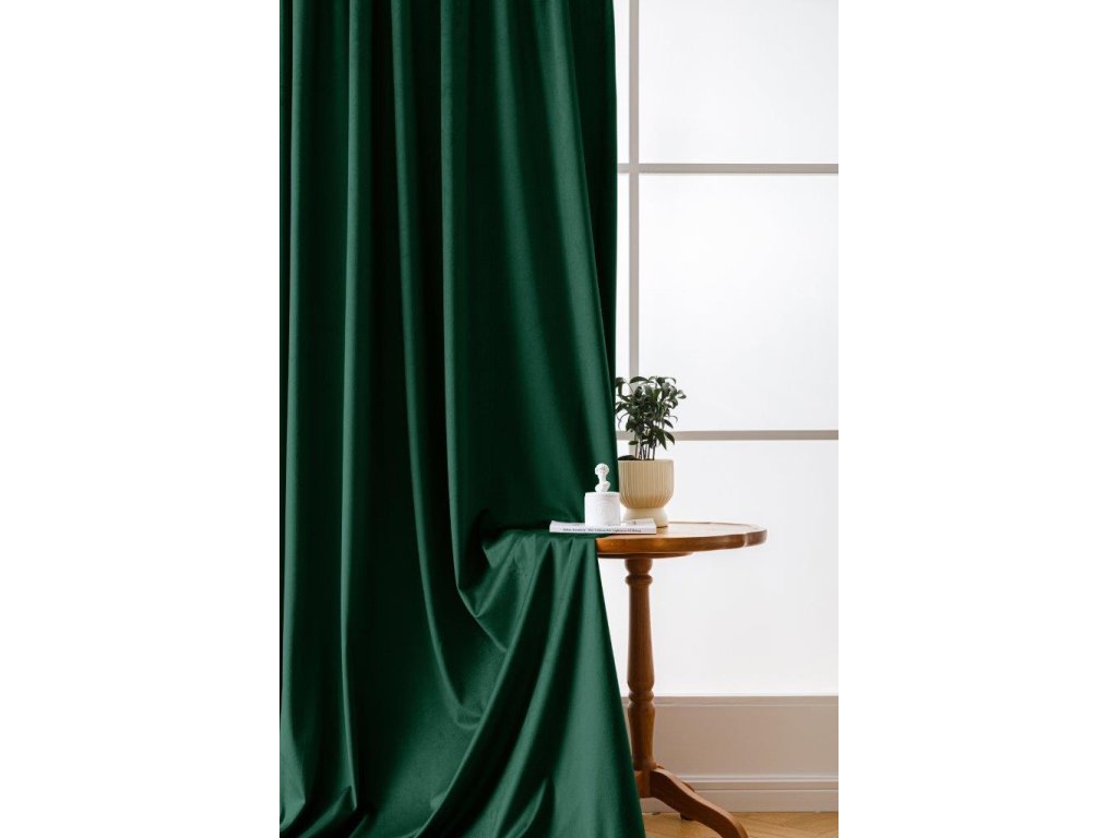 Dunkelgrüne Verdunkelungsvorhänge VELVET 140x250 cm (2 Stück), Metallringe