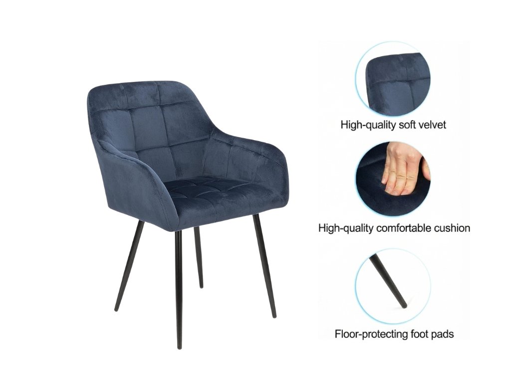 Samtene Esszimmerstühle bieten eine elegante und komfortable Lösung für jedes Esszimmer oder jede Küchenecke. Dank der weichen Oberfläche des Samtstoffs wirken sie luxuriös sowohl im Aussehen als auch im Gefühl, während die weiche Polsterung und die ergonomische Form auch bei längerem Sitzen Komfort bieten. Diese Art von Stühlen ist nicht nur ein praktisches Möbelstück, sondern auch ein auffälliges Designelement, das auf den ersten Blick beeindrucken kann. Sie eignen sich hervorragend sowohl für den täglichen Gebrauch als auch für gelegentliche Zusammenkünfte mit Gästen.