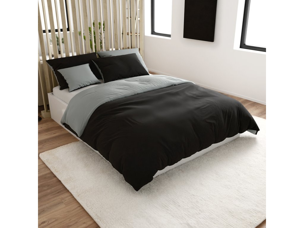 Einfarbige Bettwäsche aus grauer Baumwolle