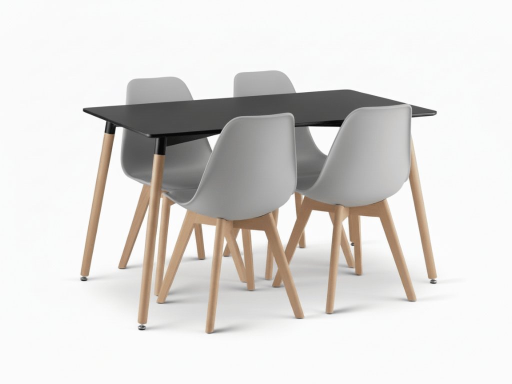 Essgruppe 1 + 4, schwarzer Tisch ADRIA 120x80 cm + grauer Stuhl KITO
