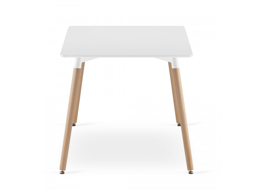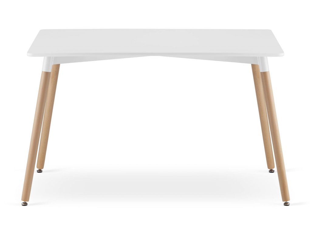 Essgruppe 1 + 4, weißer Tisch ADRIA 120x80 cm + transparente Stühle BALI MARK mit Buchenholzbeinen