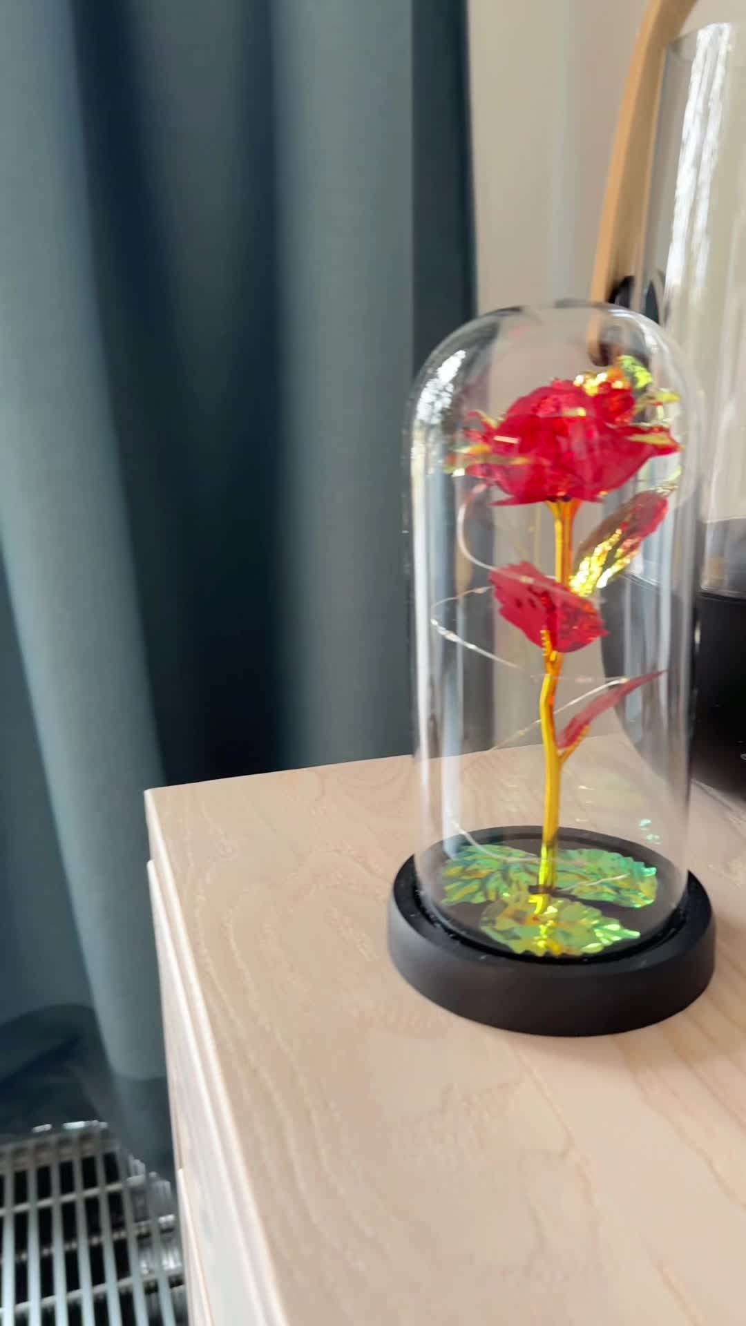 - Rose ist durch eine Glasabdeckung geschützt