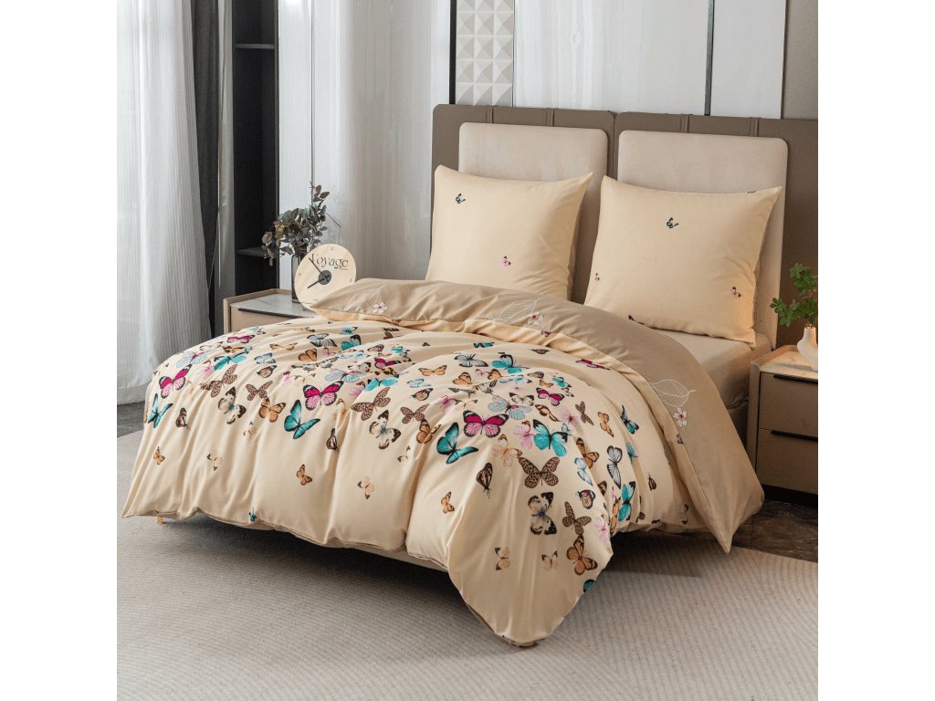 Flanell-Bettwäsche aus Mikrofaser VIVA BUTTERFLY cremefarben