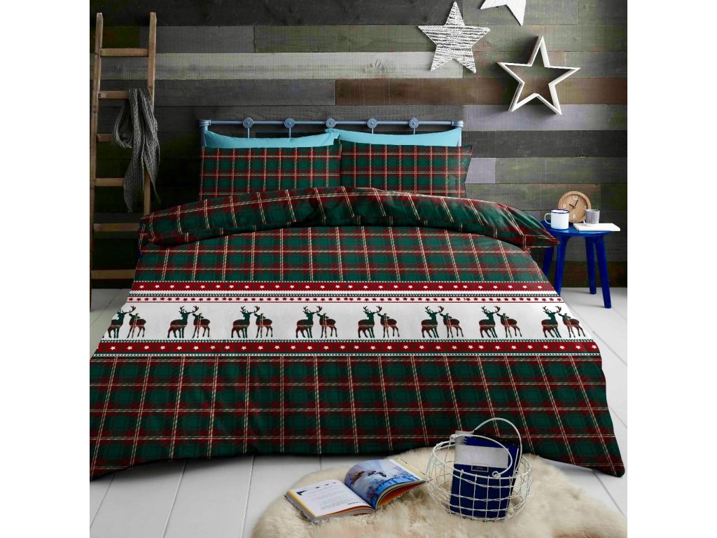Flanell-Bettwäsche REINDEER grün