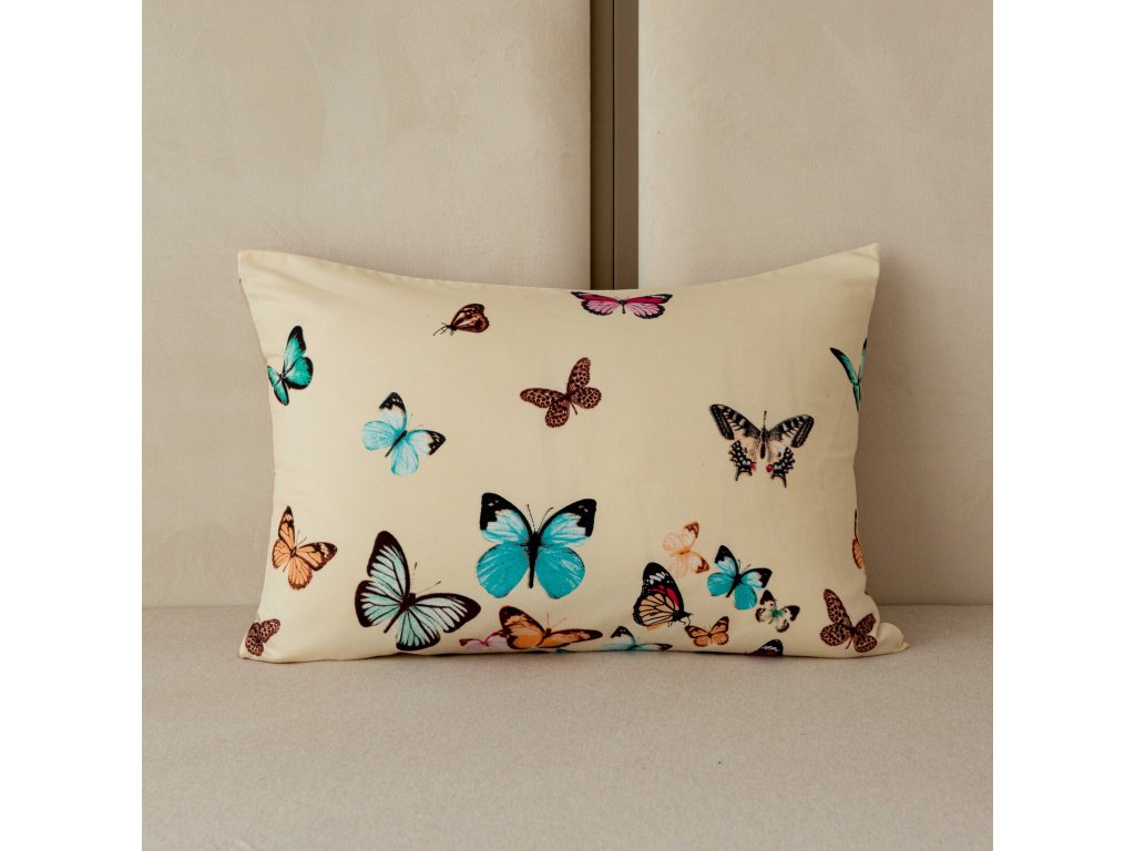 Flanell-Kissenbezug VIVA BUTTERFLY 50x70 cm, cremefarben