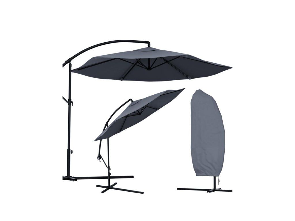 Garten-Klappschirm SUNVI 300 cm, grau + kostenlose Verpackung