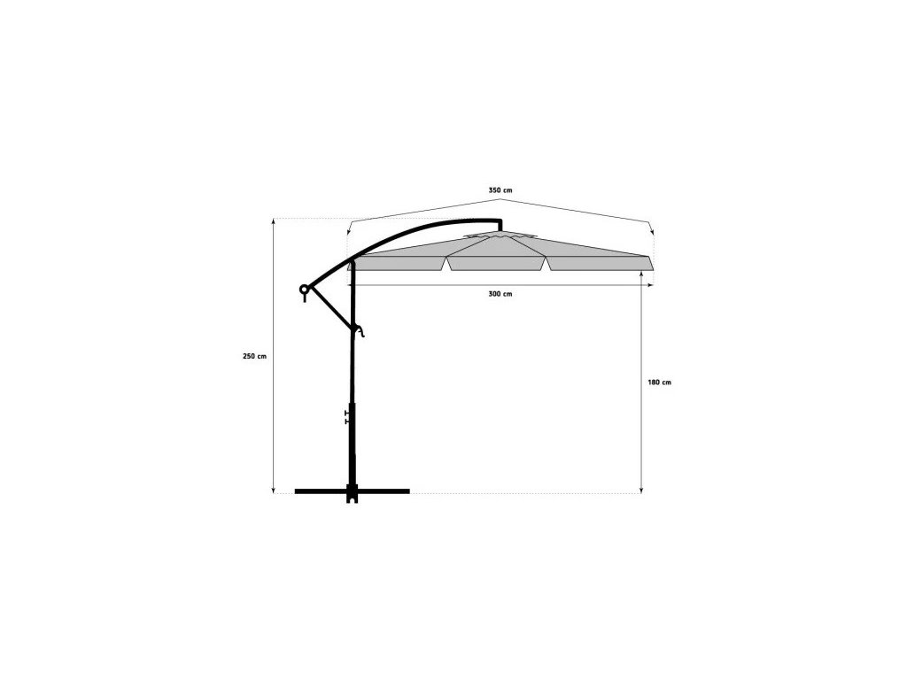 - Breite mit Überhang: 350 cm