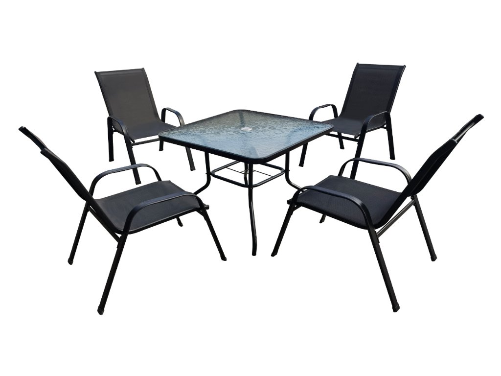 Gartenset TAVERNO 1 + 4, Tisch 80x80 cm, schwarz