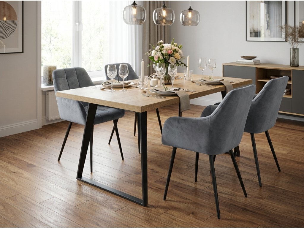 Grauer Esszimmerstuhl LOREN VELVET mit schwarzen Beinen