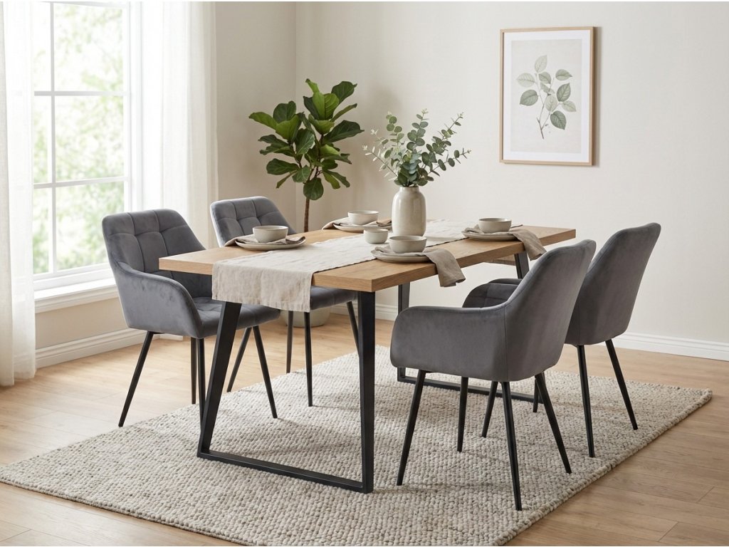 Samt Esszimmerstühle bieten eine elegante und bequeme Lösung für jeden Essbereich oder Küchenbereich. Dank der weichen Oberfläche des Samts wirken sie sowohl optisch als auch haptisch luxuriös, während weiche Polsterung und ergonomische Form für Komfort auch bei längerem Sitzen sorgen. Dieser Stuhltyp ist nicht nur ein praktisches Möbelstück, sondern auch ein auffälliges Designelement, das auf den ersten Blick beeindruckt. Er eignet sich hervorragend sowohl für tägliche Mahlzeiten als auch für gelegentliches Beisammensein mit Gästen.