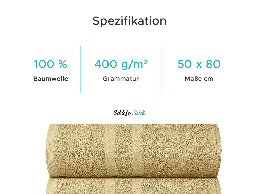 Eine der am weitesten verbreiteten Handtuchgrößen, die in vielen Haushalten und in verschiedenen Unterkünften verwendet wird. Die Größe 50 x 80 cm ist die typische Größe von Handtüchern. Für den täglichen Gebrauch im Badezimmer oder am Waschbecken zum Händetrocknen ist es ebenfalls geeignet. Es ist auch für Waschbecken in der Werkstatt oder in verschiedenen Produktionsanlagen geeignet.