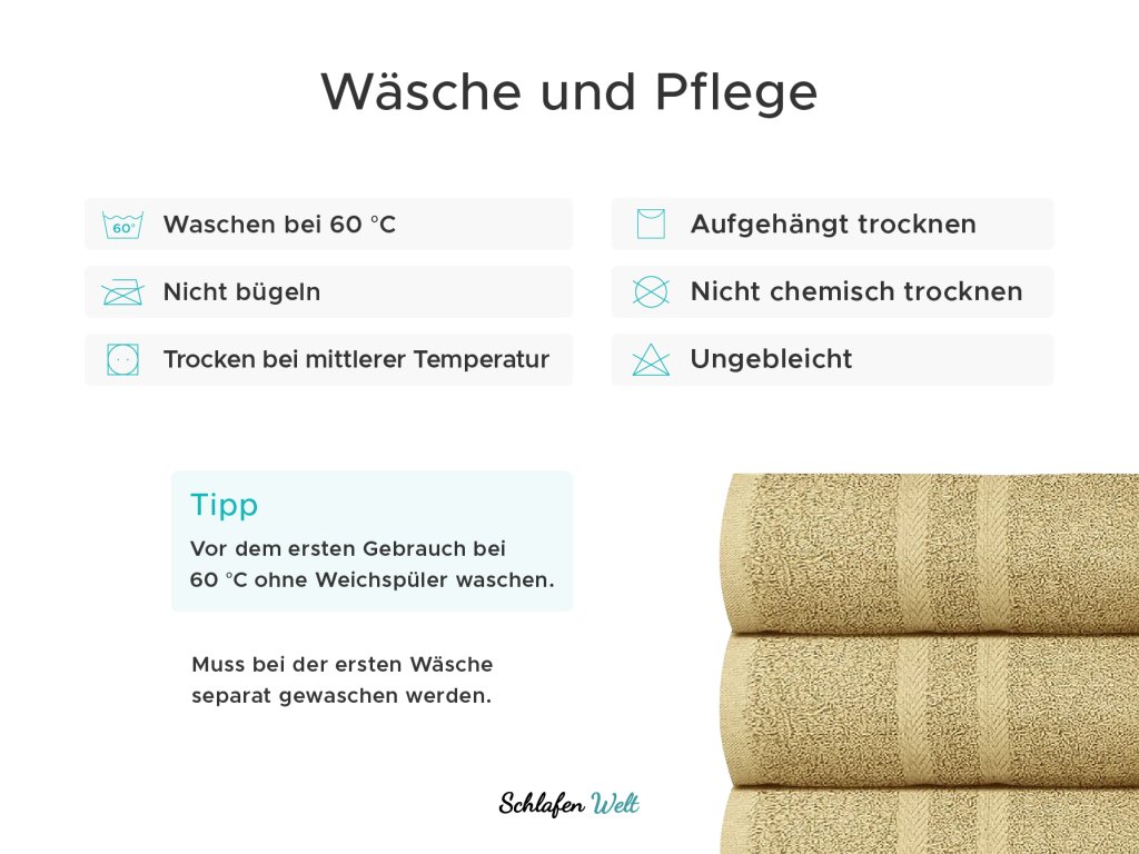 Die empfohlene Temperatur zum Waschen des Handtuchs beträgt 60 °C