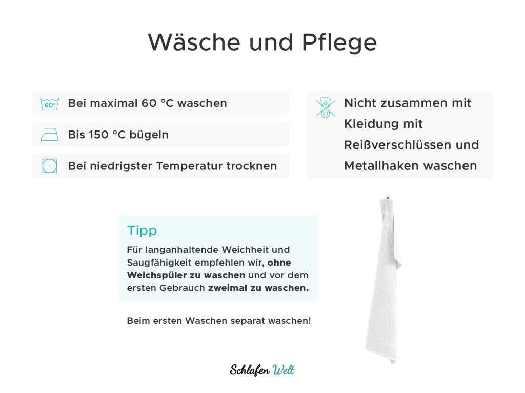- Für langanhaltende Weichheit, Sanftheit und Saugfähigkeit wird Weichspüler nicht empfohlen