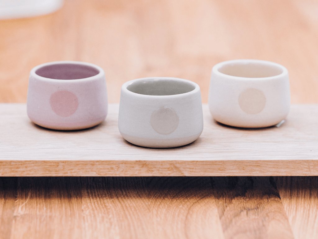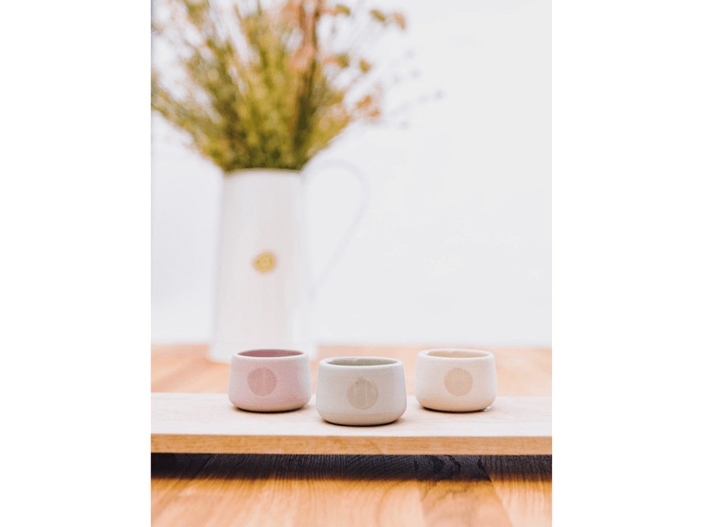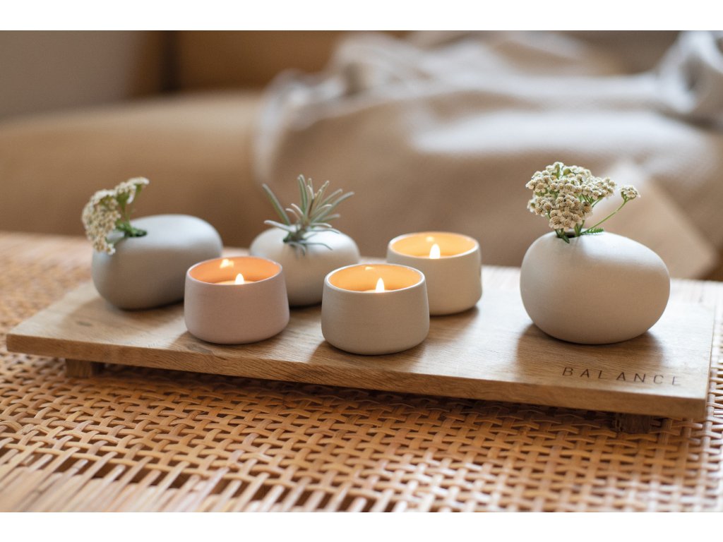 Hellgrauer Kerzenhalter aus Steingut LIGHT GRAY