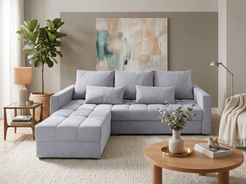 Hellgraues ausziehbares Ecksofa ZENOVA 220 x 140 cm, beidseitig PAROS 05